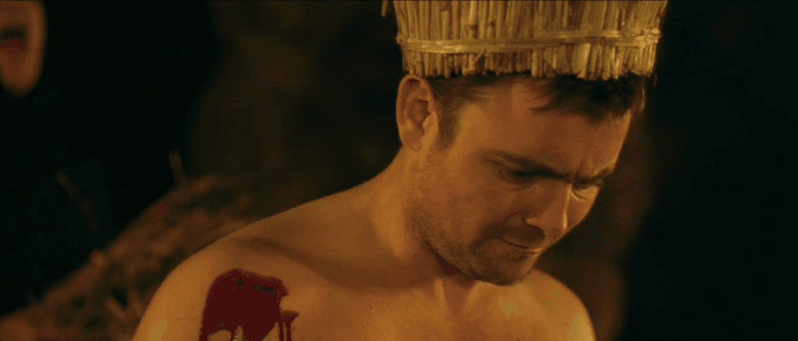 El shock de haber asesinado a su familia lo llevan a abstraerse por completo mientras los miembros de la secta lo veneran y colocan una corona sobre su cabeza.