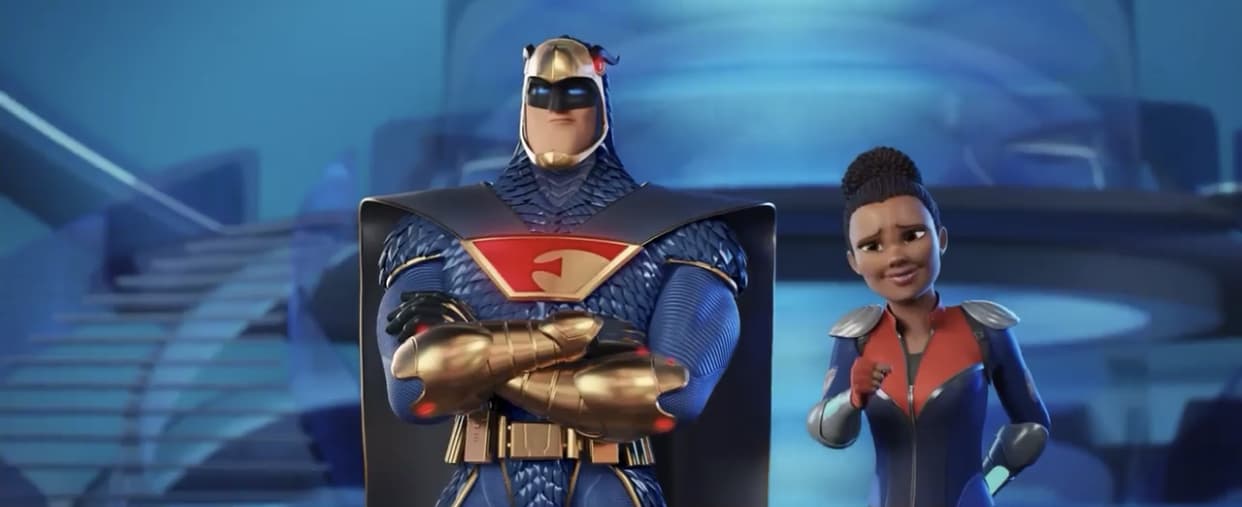 El equipo de Blue Falcon también incluye a Dee Dee Sykes, un personaje de otra caricatura de Hanna Barbera: Capitán Cavernícola y los Ángeles Adolescentes. El Capitán Cavernícola no aparece en el tráiler, pero podría tener un cameo en la película.
