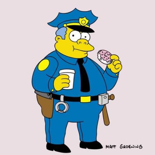 Jefe Gorgory: Gordo, inepto y crónicamente corrupto, el Jefe Gorgory obtuvo su empleo gracias a su incompetencia y un poco de suerte. Siempre está a la orden del día para aceptar sobornos. Nadie lo definió mejor que Ned Flanders quien en un arrebato de furia lo llamó "El gordo y fofo brazo de la ley".