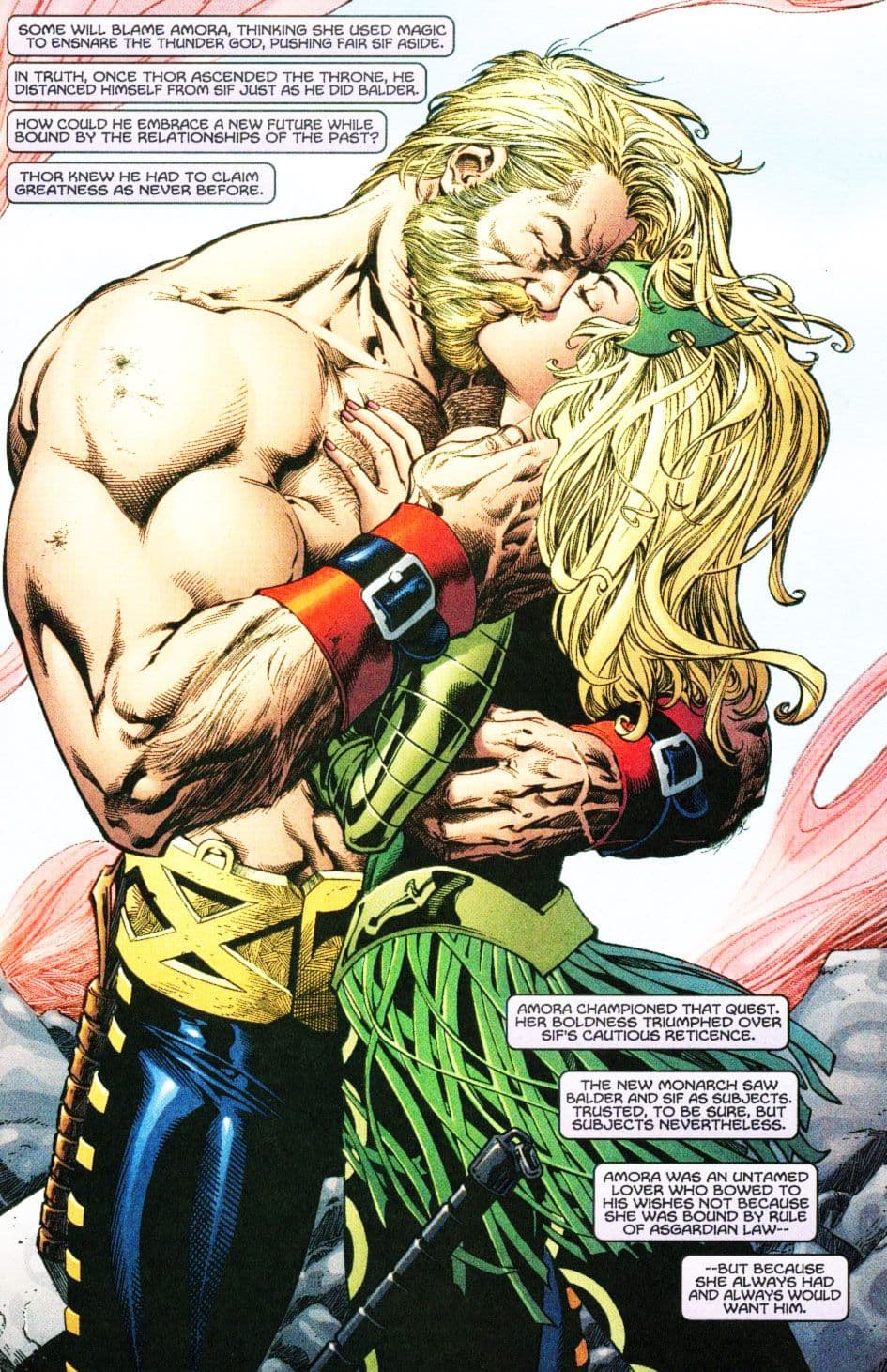 Durante la misión, Enchanthress es apoyada por Skurge, a quien ya le dio vida Karl Urban. En ese arco, mientras que el villano se enamora de la bruja, Amora termina enamorada de Thor.