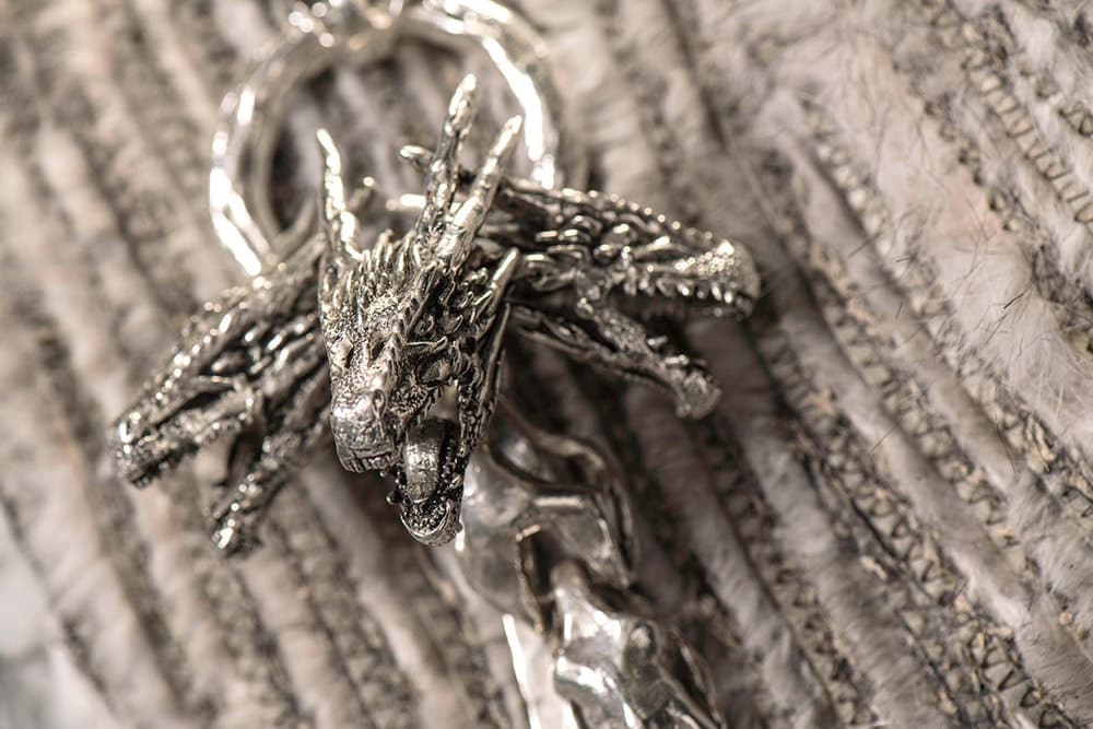 La textura de la tela simula las escamas de la piel del dragón.