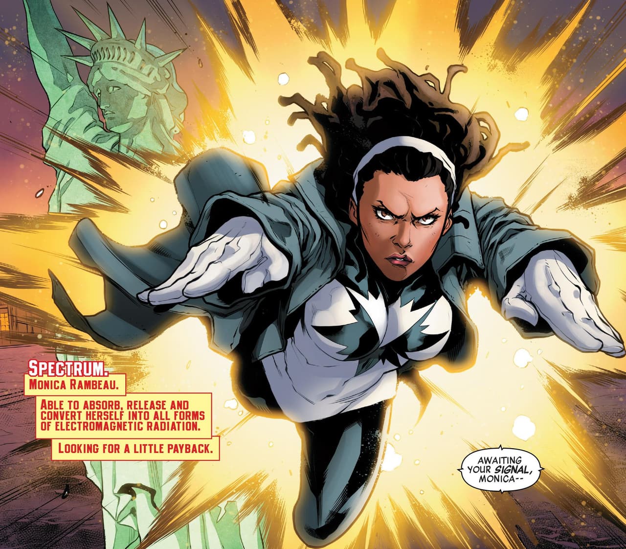 Después utilizó nombres como Spectrum, Pulsar y Photon, todos alusivos a su habilidad de absorber y redirigir cualquier tipo de energía.