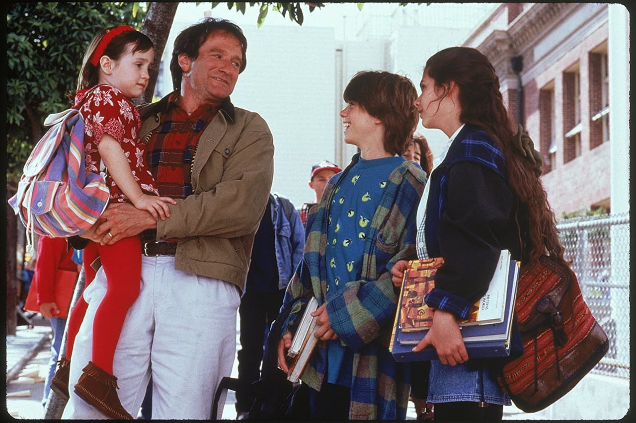 Para no alejarse de ellos, Daniel decide convertirse en una anciana que se postulará como niñera de sus propios hijos. Las risas están aseguradas.