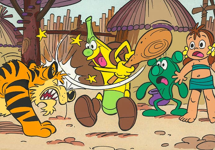 Corría el año 1991 cuando la primera cadena en España estrenaba una serie colorida, fresca y diferente. Tras esa contagiosa intro, los capítulos (de 25 minutos cada uno) comenzaban con una panorámica que nos sumergía en la Ciudad de los Fruittis, construida en un bosque para evitar los efectos de un volcán y en la que encontrábamos exóticas casitas en forma de seta o piña.