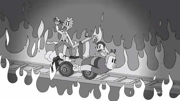 Entre las miles de referencias a través de los 22 estilos visuales que el segmento recorre, nos encontramos con el estilo primigenio de las caricaturas de disney, un homenaje al film Batman (1989) de Tim Burton, Freddy Krueger, animaciones estilo claymation, la muerte de Morty y hasta un apocalípsis zombie.