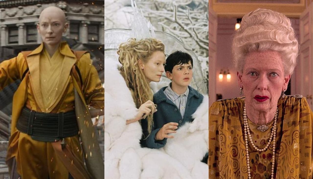 La actriz británica cuenta con un sorprendente número de personajes tan diferentes que van desde brujas blancas ( Las crónicas de Narnia), vampiresas ( Only Lovers Left Alive) y hechiceras supremas ( MCU), madres acosadas por sus hijos ( We Need to Talk About Kevin) hasta incluso interpretar a tres personajes –Madame Veva Blanc, Helena Markos y Dr. Josef Klemperer– en una misma película, Suspiria