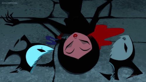 En las temporadas pasadas, Jack mataba robots y eso impedía que viéramos sangre en una serie para niños. Ahora está en Adult Swim y Jack mata por primera vez a otro ser humano. Ve la sangre y se da cuenta del cambio drástico en la situación.