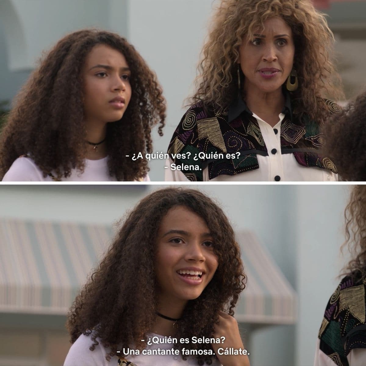 Mientras Selena y su familia pasan cerca de las tres mujeres, una música con campanitas que repican y un tono muy inspirador y de telenovela suena al fondo. Selena nota las miradas y les dice «Hola» con una gran sonrisa, saludo que es inmediatamente respondido.
