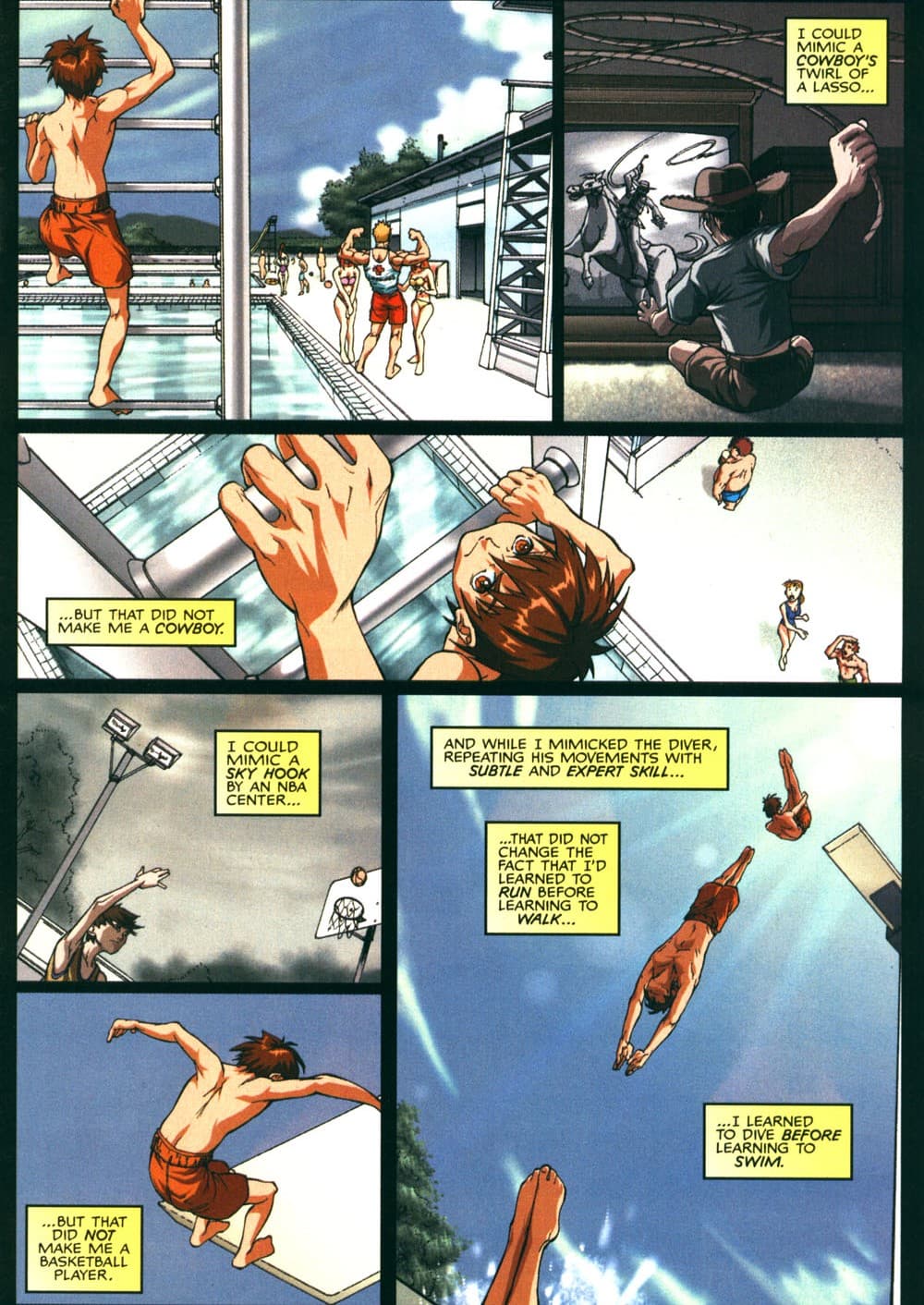Tony probó el suero y sus habilidades físicas y cognitivas se multiplicaron exponencialmente; sin embargo, parte de los efectos secundarios fue la pérdida de memoria. Así que olvidó su alianza con SHIELD y huyó para fundar su propia academia de villanos, ahora bajo el nombre de Taskmaster.