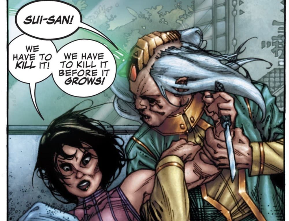 En los cómics, Thanos es hijo de Sui San y A'lars, pero fue rechazado porque su madre lo consideraba deforme y un peligro para la galaxia (bien sabe una madre), así que intentó apuñalarlo cuando aún era un bebé, pero su padre lo salvó.