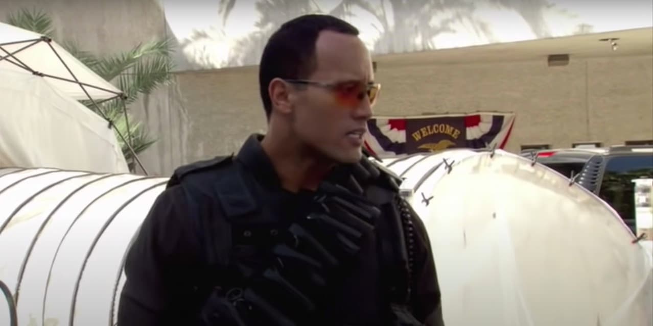 The Rock interpretó a un agente de SWAT que explota una granada por accidente mientras intentaba dar un discurso motivacional a su equipo.