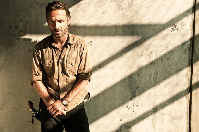 En el cómic de Kirkman, Rick Grimes es presentado como un oficial de policía que resulta herido en cumplimiento del deber, lo que causa que entre en un estado de coma del que se despierta meses después para ver al mundo completamente convulsionado. Con este disparador de trama presentamos a un policía que no atravesó la etapa inicial del apocalipsis sino que debió asimilarla de manera más directa y sin proceso de adaptación (algo que causaría locura en la mayoría de las personas). Esa fortaleza es la que vuelve a Rick el héroe y centro de la historia, ya que mantiene un ideal que el mundo ha dejado de lado en favor de sobrevivir. Esta característica es la que lo convierte en el líder a seguir, ya que aún mantiene la esperanza de que el mundo puede ser reconstruido.