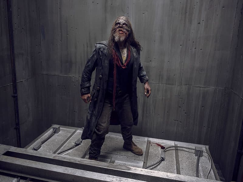 A pesar del golpazo que se da en el ascensor, el fortachón de los Susurradores sigue con vida, y más enojado que nunca. Si ya estaba dispuesto a ir tras Lydia y acabar con quien se metiera en su camino, ahora su problema con Daryl es personal y no acabará hasta hacerlo pedazos.