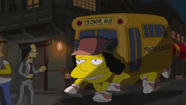 Nadie más que este personaje de Los Simpson podía transformarse en autobús. Es parte de una apertura creada como homenaje a Miyazaki.