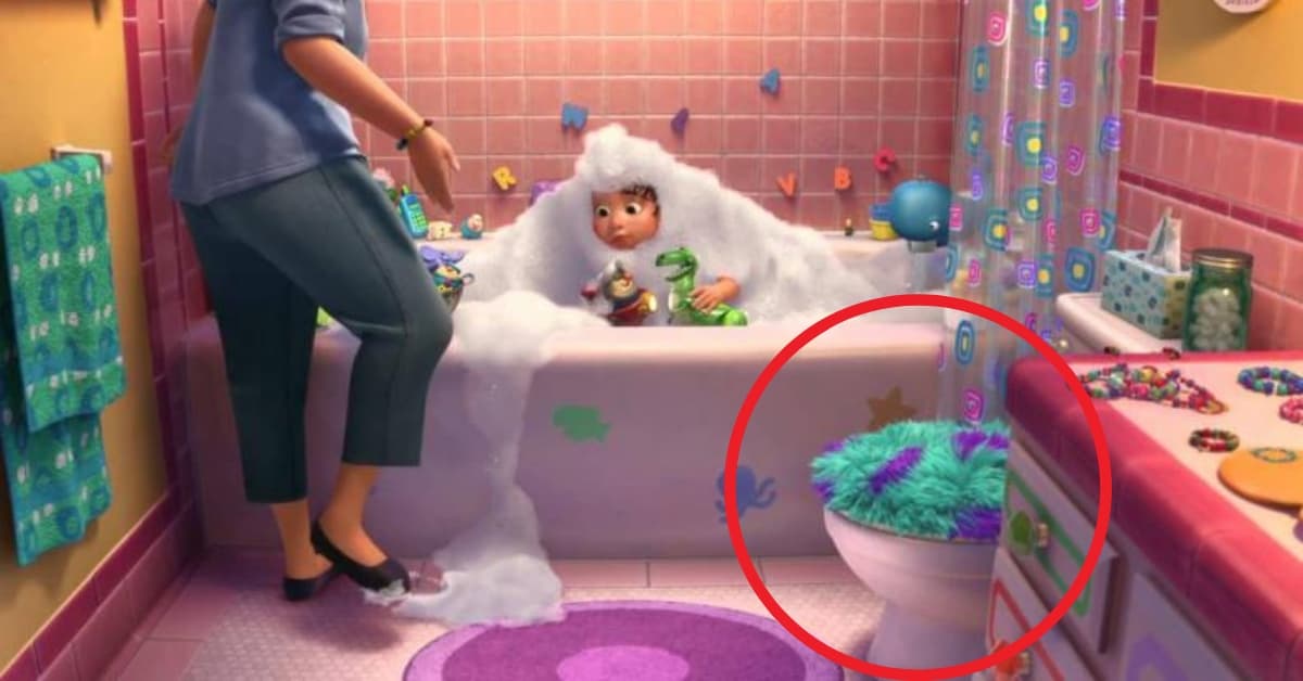 Por cierto, ¿notaste el tapete que se encuentra en la tapa del inodoro? ¿No te recuerda al pelaje de algún personaje? Sí, efectivamente ese accesorio es igual al pelo de Sully, protagonista de Monster Inc. Según las teorías más locas sobre las películas de Pixar, el adorable monstruo terminó convertido en tapete de baño.
