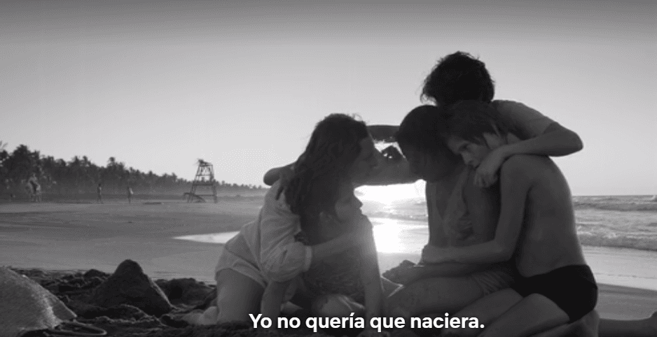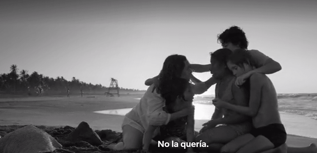 Una de las escenas más conmovedoras de la cinta es la de la playa, donde las revelaciones de Cleo y la familia con la que trabaja como empleada doméstica, llegan a un clímax definitivo.