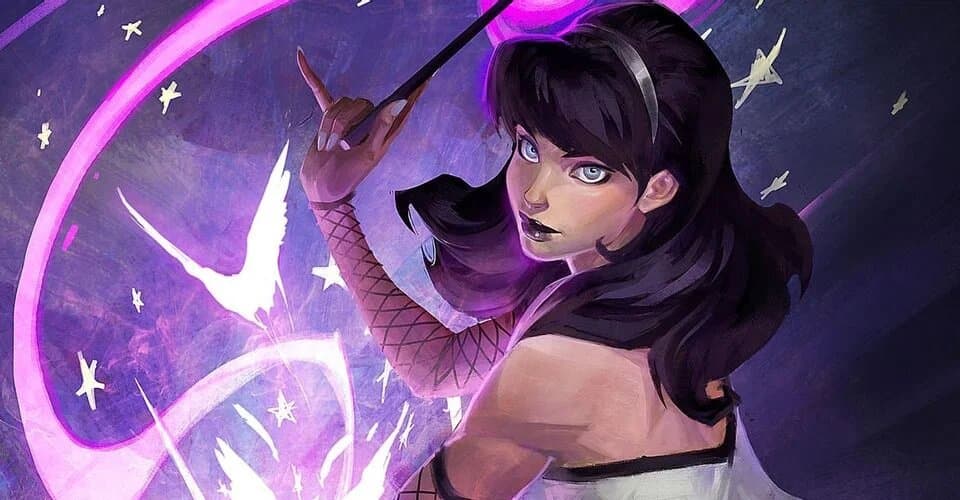Zatanna es una hechicera que puede lanzar encantamientos ordenando las palabras al revés. La heroína fue reclutada por la Liga de la Justicia y se convirtió en uno de los personajes más poderosos e importantes de DC.