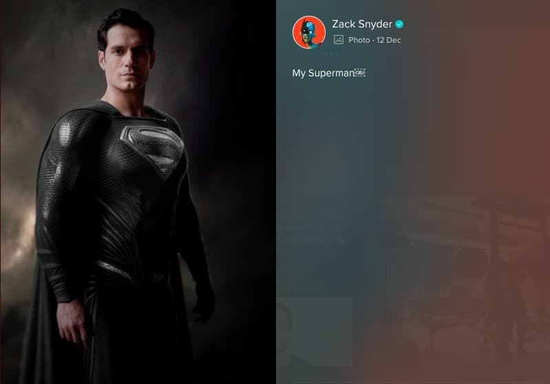 A unos días de confirmar la existencia de 'Snyder Cut', el director compartió una imagen de Henry Cavill en traje negro con el título ‘Mi Superman’.