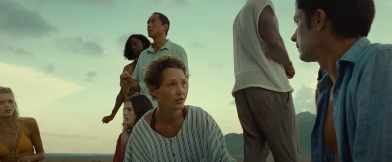 Después de encontrar la explicación a los sucesos de la playa, dos personajes logran huir a través del arrecife para desenmascarar la empresa detrás del experimento y vuelan lejos del lugar.