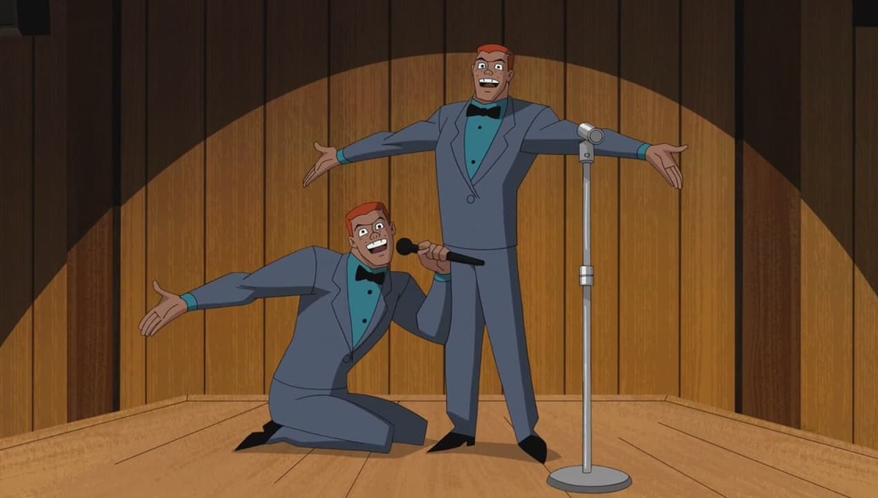 Si han llegado a esta parte de la película seguramente es más por curiosidad en ver cómo se resuelve, que por intriga en torno a la trama. Sin duda, el momento más surrealista de la película ocurre en un bar de Bludhaven, donde se reúnen diversos secuaces de varios villanos de Gotham. En esta extraña escena, podemos ver cameos de varios personajes aparecidos en Batman: The Animated Series bailando y divirtiéndose, mientras Max y Min (los secuaces de Two-Face) cantan a dúo demostrando una elección de canción y coreografía que… realmente, da mucho a que pensar.