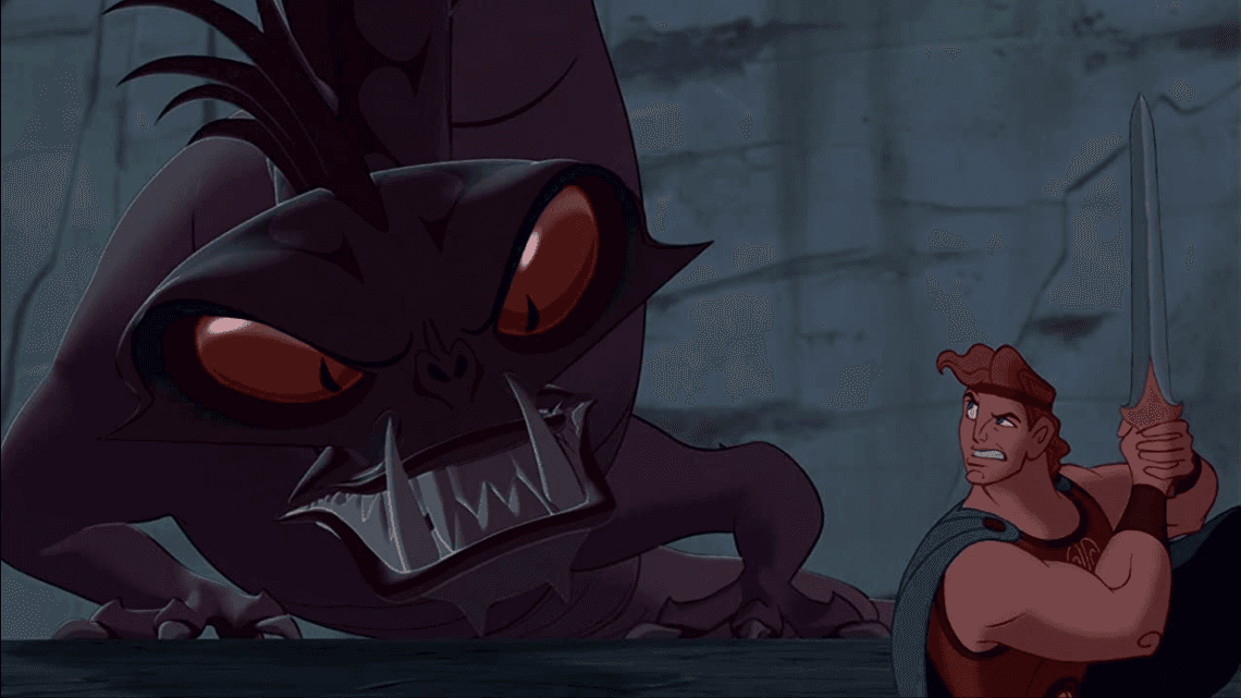 La misión parece exitosa cuando los "niños" –quien en realidad son Pena y Pánico– son salvados pero obviamente esto sólo es el señuelo. Hades tiene un as bajo la manga: Hidra, un despiadado monstruo con forma de serpiente que se yergue imponente frente a Hércules.