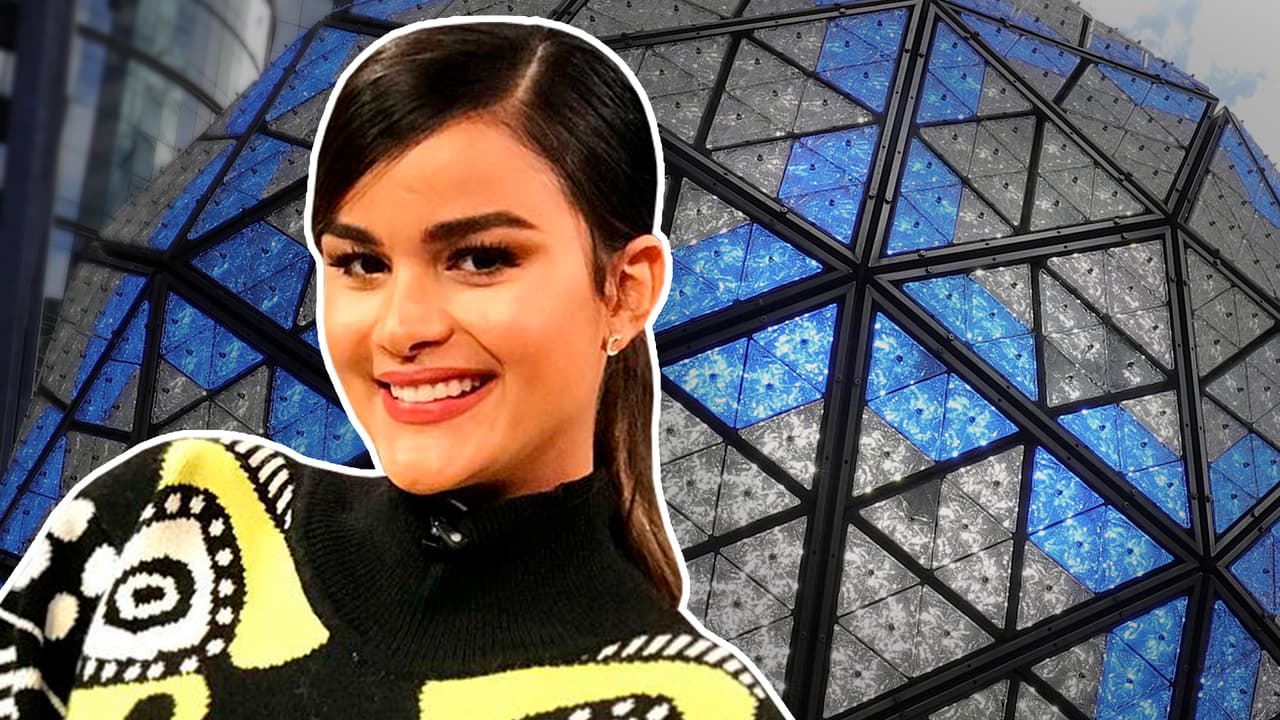 Desde lo alto de Times Square Clarissa Molina muestra la gran bola de cristales que marcará la llegada de 2019