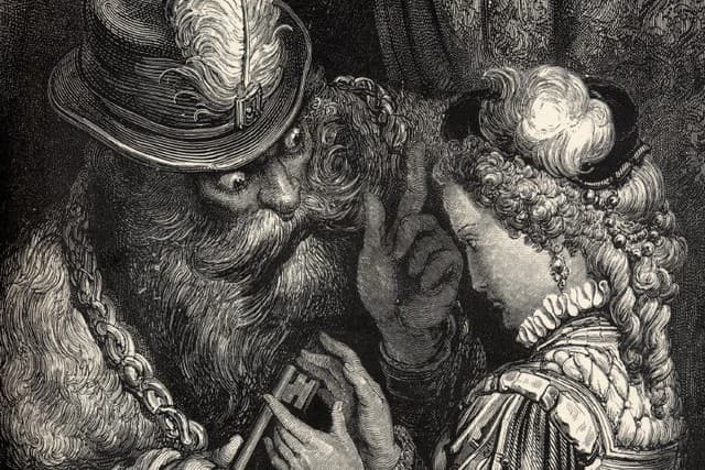El cuento de Charles Perrault protagonizado por el aristócrata que mata a sus esposas, tiene su antecedente en Conomor el Maldito, un líder tiránico de la Edad Media en Bretaña, Francia.