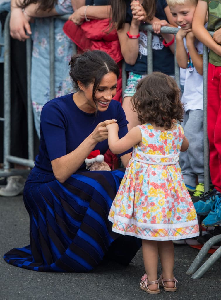 En Melbourne, Australia, Meghan recibió gustosa cada regalo que los niños le daban. Sus facultades histriónicas la colocan además como la compañera de juegos ideal.