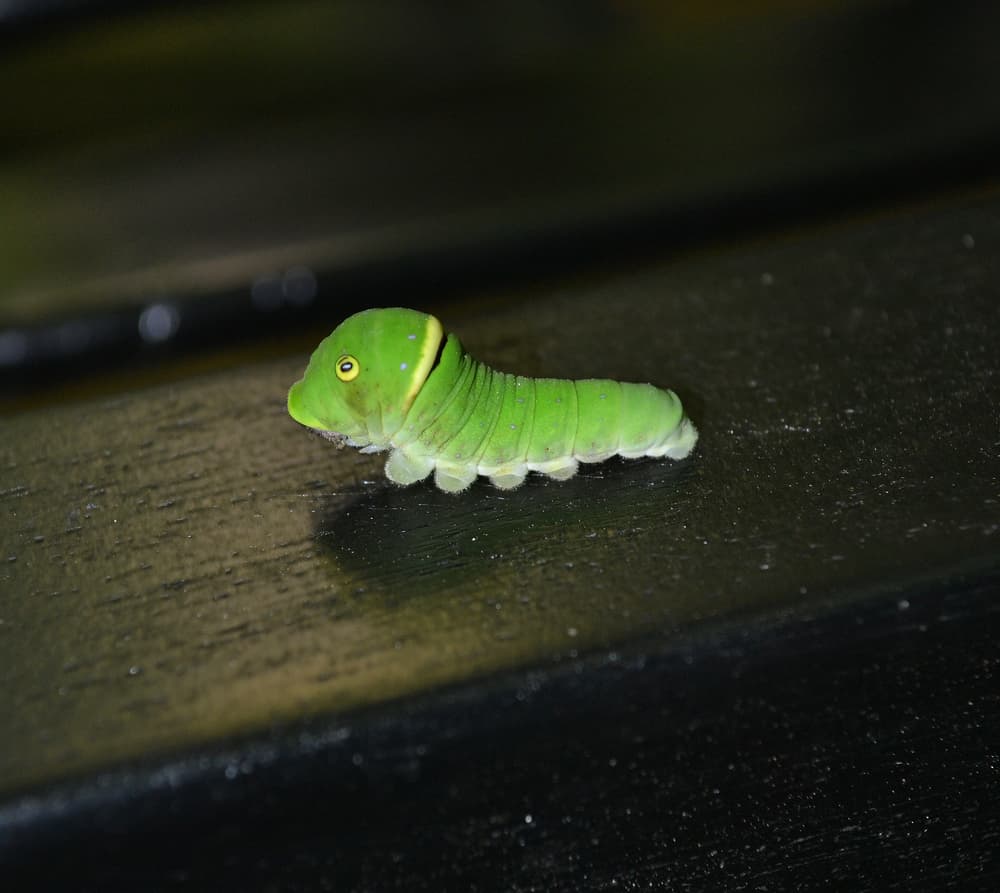 Sin embargo, esta oruga de la vida real no evoluciona en una mariposa morada como Butterfree, sino que se transforma en una mariposa tigre de tonos dorados.