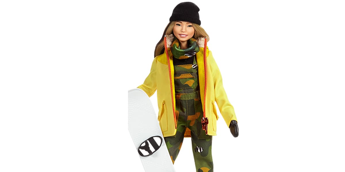 Una de las muñecas más cool de esta línea es la que emula a Chloe Kim. Ella es la campeona de Snow Bording más joven en ganar una medalla de oro olímpica.