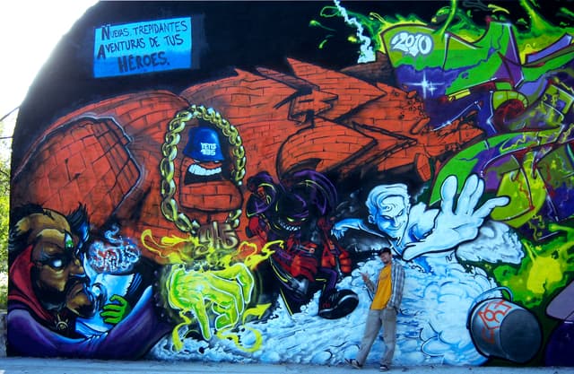 Antes que nada, no está demás repasar qué es el graffiti, ¿no? Bueno, a menudo se le conoce simplemente como aerosol, pintada o justamente, graffiti, al arte de las inscripciones, el dibujo o la pintura con uno o varios aerosoles realizada sobre inmobiliario, generalmente público y más precisamente, sobre paredes o secciones de alguna construcción.