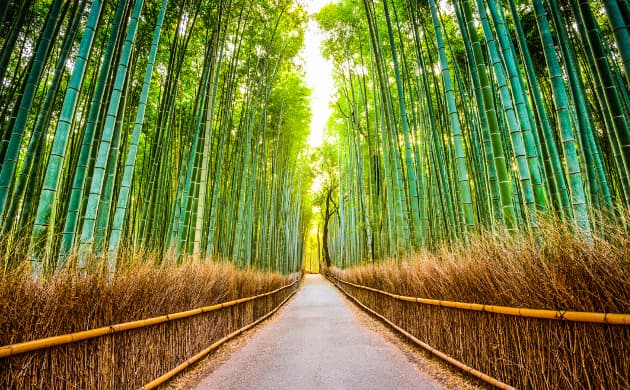 Como extraído de un cuento zen, los altos bambús de Arashiyama, en Kyoto, nos transportan a un escenario en el que la serenidad nos atrapa mientras deseamos que el único sendero que surca el bosque nunca termine. Accesible desde la salida norte del templo Tenryū-ji , ese bosque de bambú es todo cuanto puedes pedirle a la naturaleza de un país que parece dibujar lugares totalmente diferentes a todo cuanto hayamos visto antes.