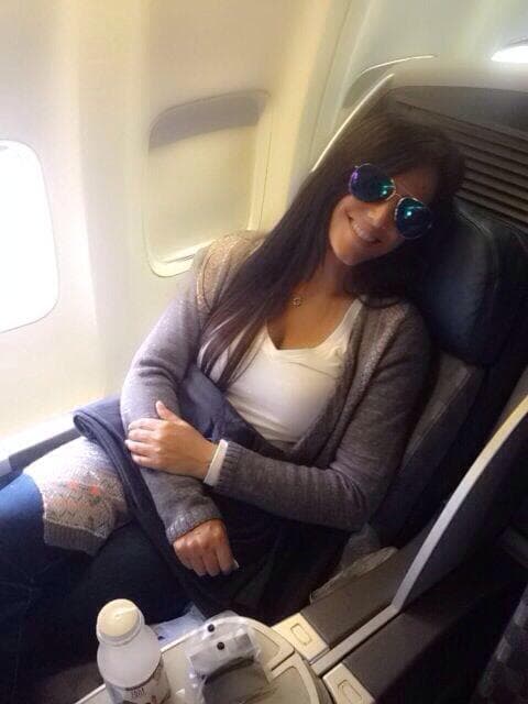 En uno de sus viajes más recientes, la conductora estuvo en lo que parece ser un asiento de primera clase, pero sin su galán que le hiciera compañía.