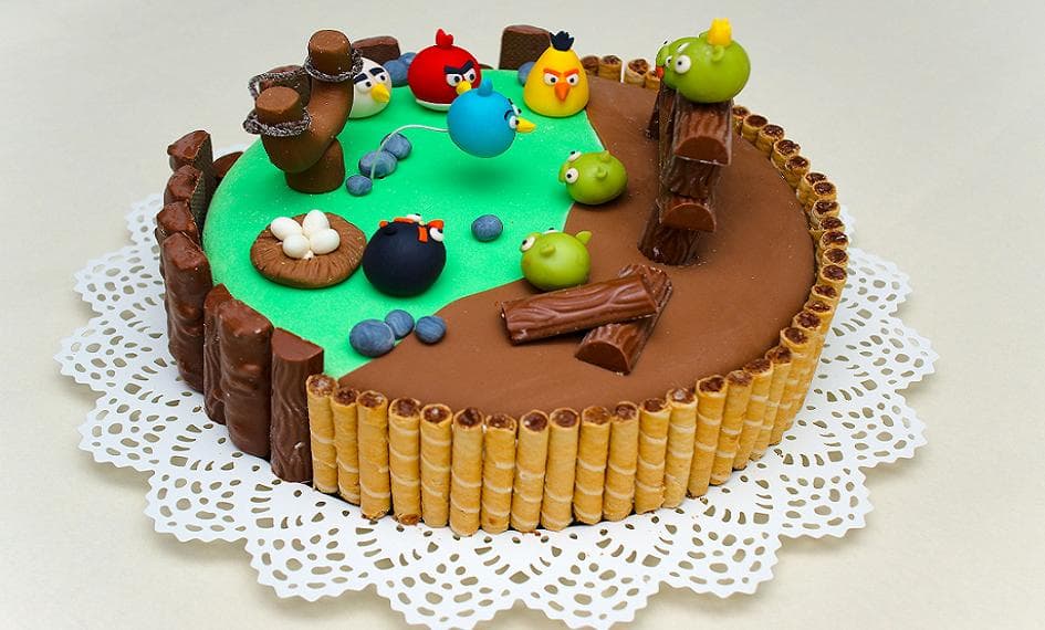 Este pastel no solo se ve genial, sino también delicioso. La decoración con chocolates es muy interesante. Lamentablemente no podrás lanzar a tus aves con la resortera sin romper el pastel, pero no deja de ser un excelente regalo para los amantes de Angry Birds, y mejor aún si son niños.