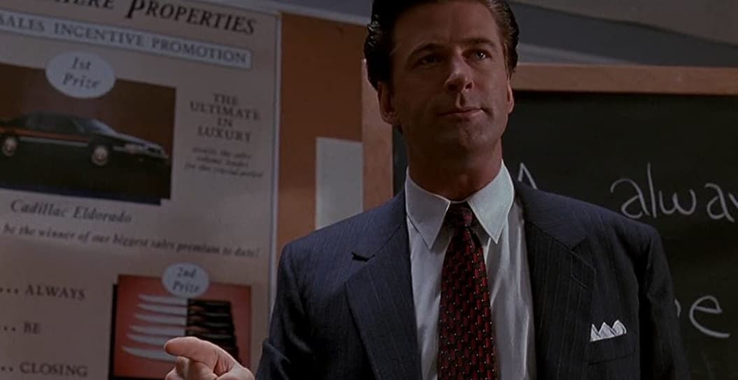 En este filme de 1992, Alec Baldwin dio vida a un agente inmobiliario que trata de motivar a una planta de trabajadores con métodos muy poco convencionales.