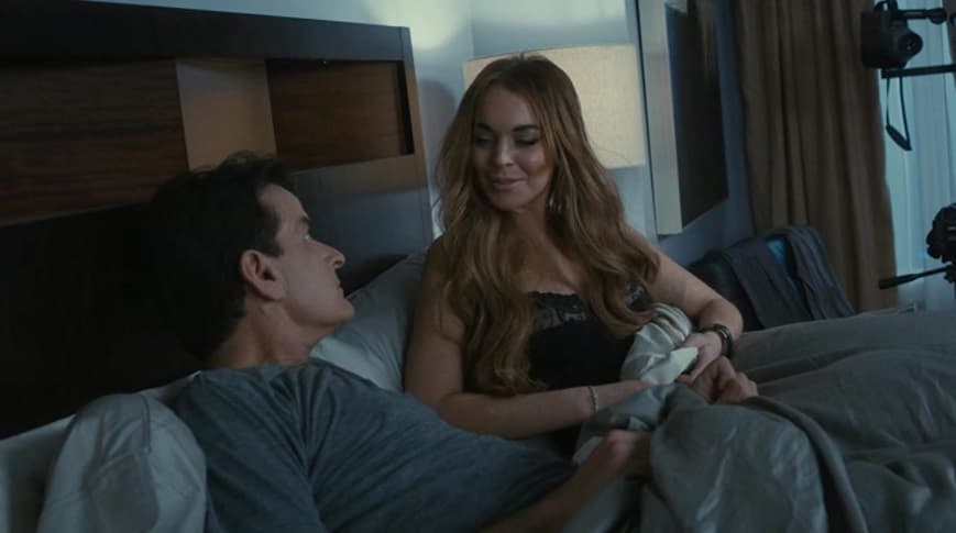 Al inicio de la quinta entrega, podemos ver a Charlie Sheen y Lindsay Lohan tratando de filmar un video íntimo en la comodidad de su hogar.