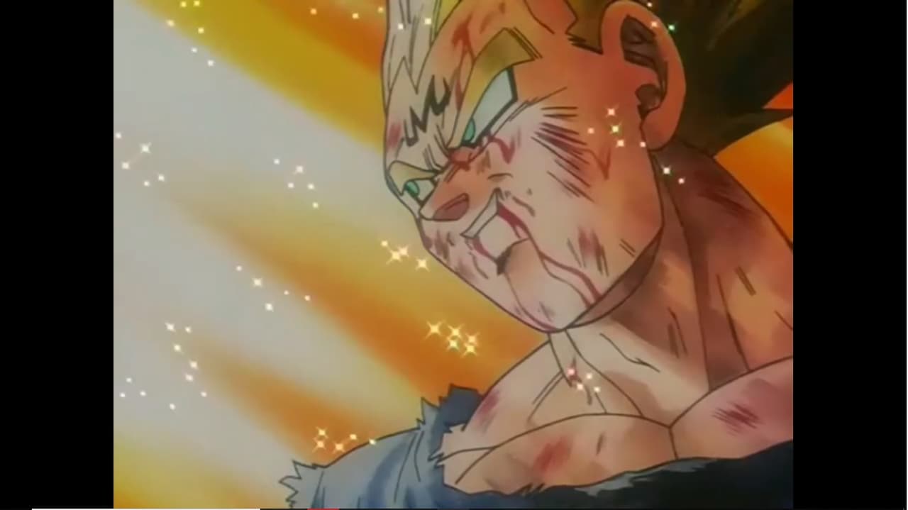 Luego de ver que es más débil que Majin Buu, Vegeta comprende que para derrotarlo debe hacerlo polvo sin que ningún pedazo quede intacto, así que lanza un ataque tan destructivo que lo termina convirtiendo en piedra. No sin antes despedirse de Trunks, Bulma y Goku.