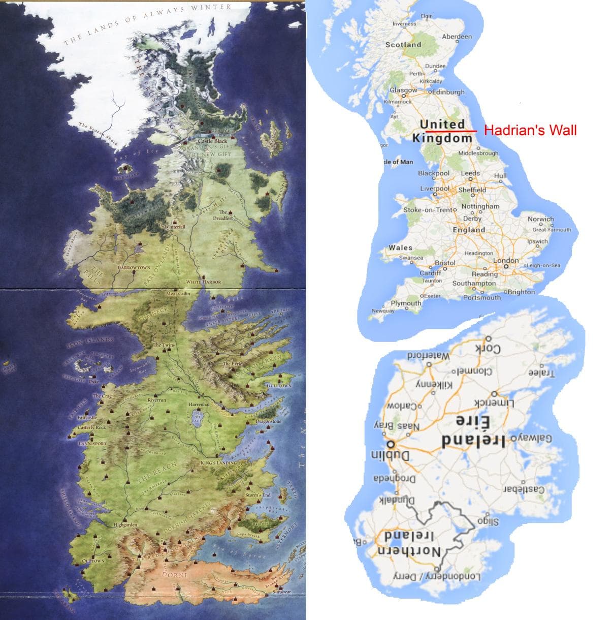 El mapa de Poniente, que vemos repetidas veces durante la serie, se parece bastante a un mapa de Inglaterra unido a lo que sería Irlanda pero de forma invertida. Interesante, ¿no?