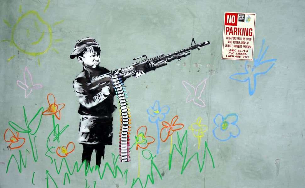Se estima que Banksy quiso representar la inocencia que pierden los niños al estar involucrados en conflictos bélicos.