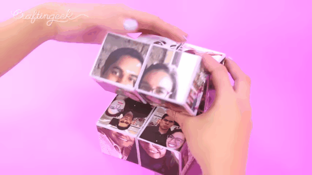 Si de verdad tienes ganas de sorprender a tu novio, esposo, amigo, amiga, free o lo que tengas, tienes que intentar hacer este cubo sorpresa lleno de fotografías, es un detalle muy original y fácil de hacer. Puedes ver el video completo aquí.