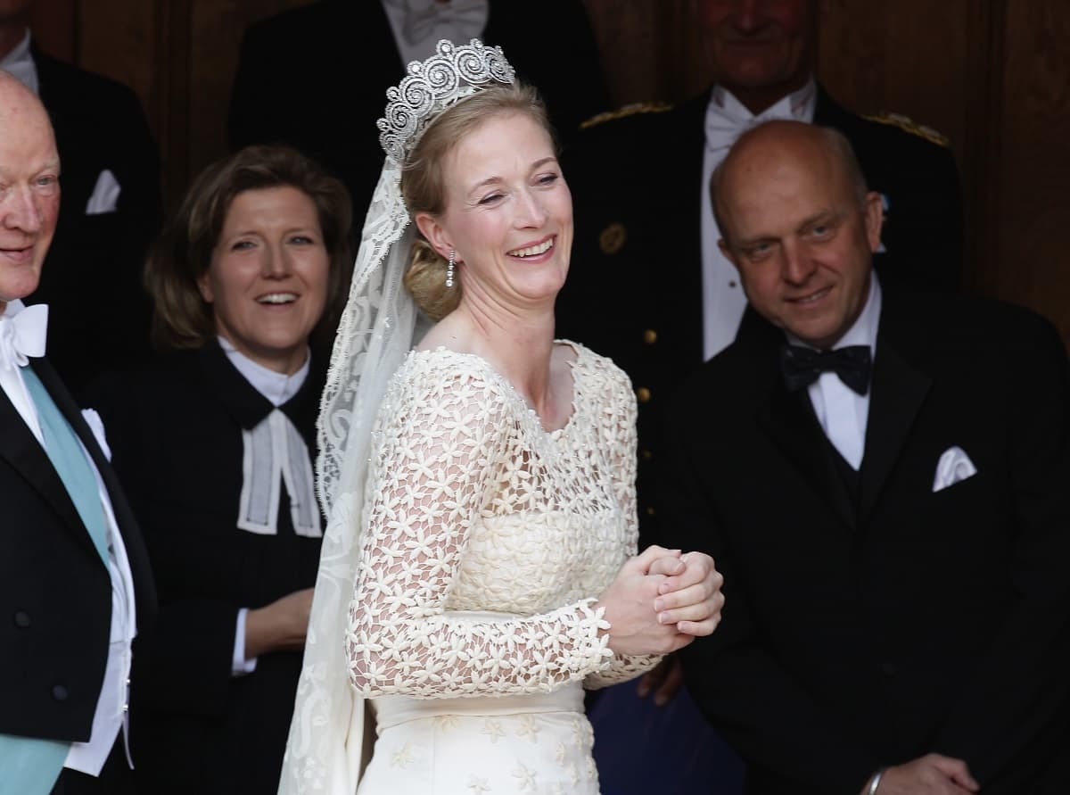 A la princesa Nathalie zu Sayn-Wittgenstein-Berleburg, de Dinamarca, se le olvidó su ramo y tuvo que esperar unos 10 minutos antes de caminar por el altar para que llegara. En esta foto se le ve esperando, pero no se ve muy estresada.