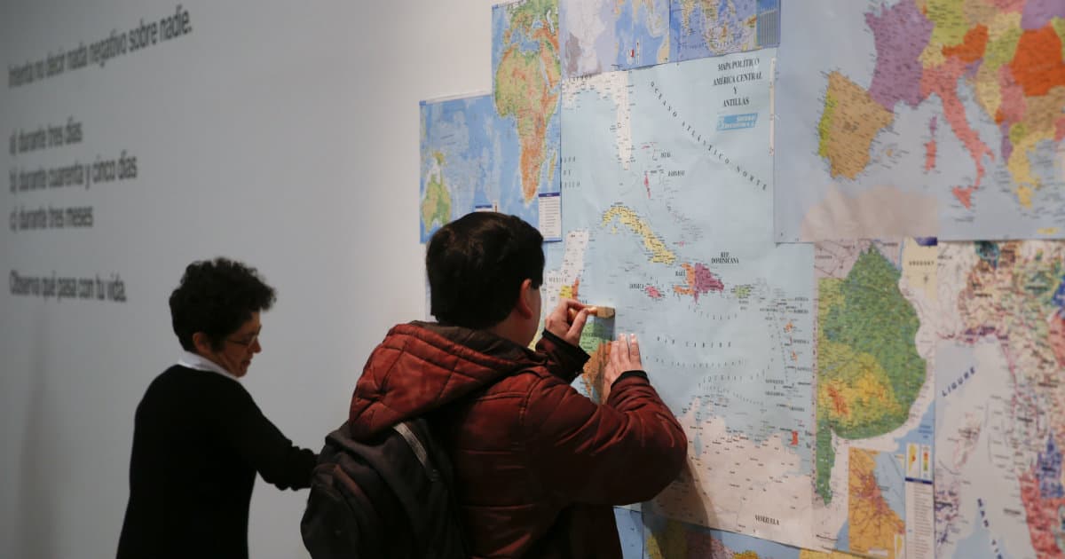 ¿A qué lugar del mundo le desearías la paz? Es la pregunta que debemos responder con una de las instalaciones de la obra. La artista nos invita a marcar con un sello la palabra "paz" en un mapa con diferentes países del mundo.