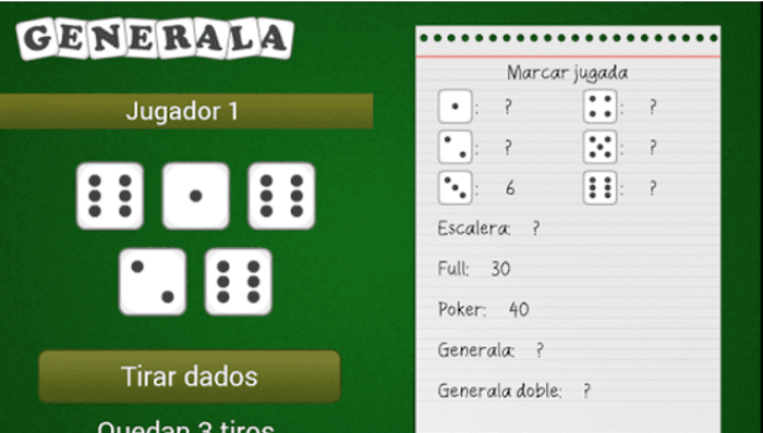 Puede ser que tengas ganas de jugar a la generala con tus amigos y no tengas los dados como para hacerlo. Pues aquí tienes la solución más práctica. Google Play