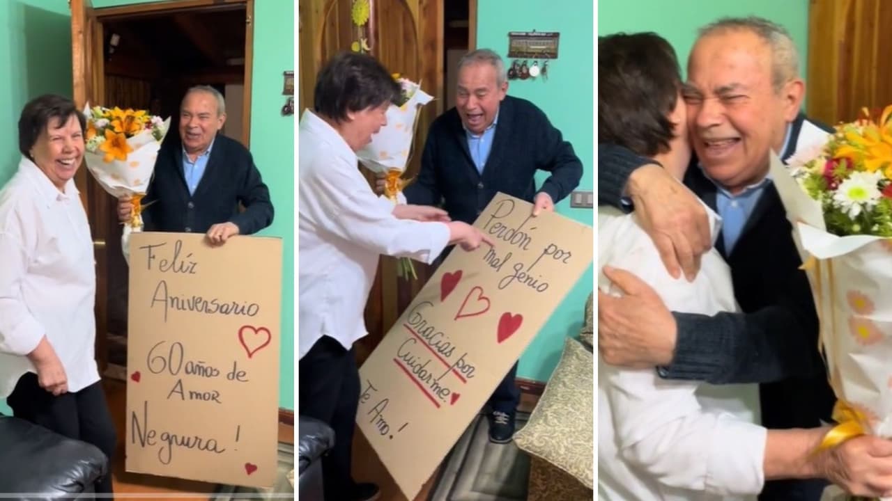 Como dos adolescentes: abuelitos celebran su 60 aniversario con una divertida sorpresa