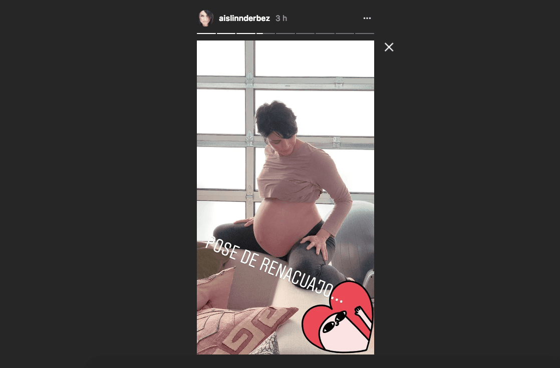 A pesar de lo avanzado que está su embarazo, Aislinn se esfuerza por continuar con esta actividad física. En otras ocasiones la actriz ha publicado videos en donde comenta que realizar ejercicio la ayuda a sentirse mejor y aliviar las molestias que la gestación le produce, como el cansancio, la dificultad para desplazarse, etc.
