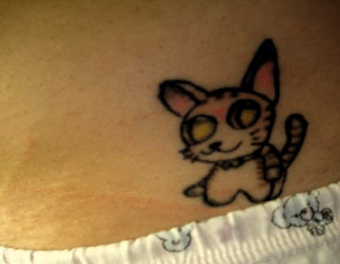 Pero eso no es todo, ella también tiene una caricatura de Paul Stanley de Kiss, como tributo a un amigo fallecido que era fanático de Kiss, unas rosas en la cadera (inspiradas en las de Lady Gaga) que no culminó porque le dolieron demasiado, en el brazo izquierdo unas rosas con una calavera (para volver a representar la armonía entre lo masculino y lo femenino) y en el brazo derecho un monje de un flash japonés que tenia su ex-novio Samael.