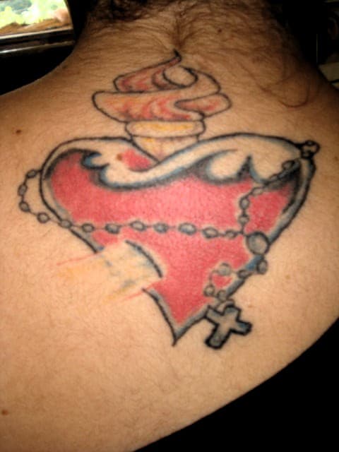 En la espalada el sagrado corazón de Jesús con la frase “recordar es volver a vivir”, en honor a su abuela quien hace 10 años dejó este mundo pero de quien cuya partida: “(...) aún duele como el primer día...). Aline nos cuenta que ella solía repetir esa frase, siempre insistiendo en que ella disfrutara la vida, porque cuando uno desea volver, es muy tarde.
