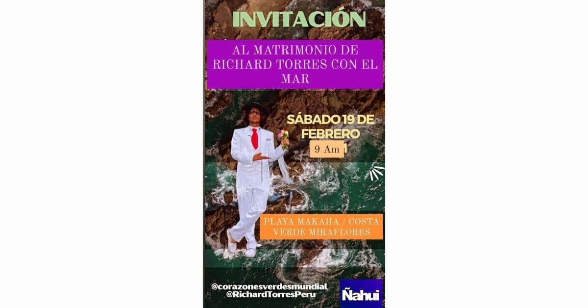 "No se podrá realizar en Ventanilla porqué las manos mafiosas que ocasionaron éste criminal ecocidio no me permiten acercarme al mar; pero nadie impedirá ésta urgente ceremonia porque el Mar es uno sólo. Vamos todos a ser la voz del Mar que sigue sangrando. Únete a ésta performance y vibremos altísimo en un sólo corazón", escribió Richard Torres en Facebook.