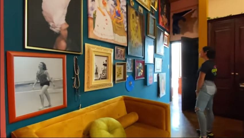 Es por eso que todos los elementos de la habitación estuvieron pensados en llenarla de inspiración cada que lo necesite y más de una de sus paredes está llena de arte.