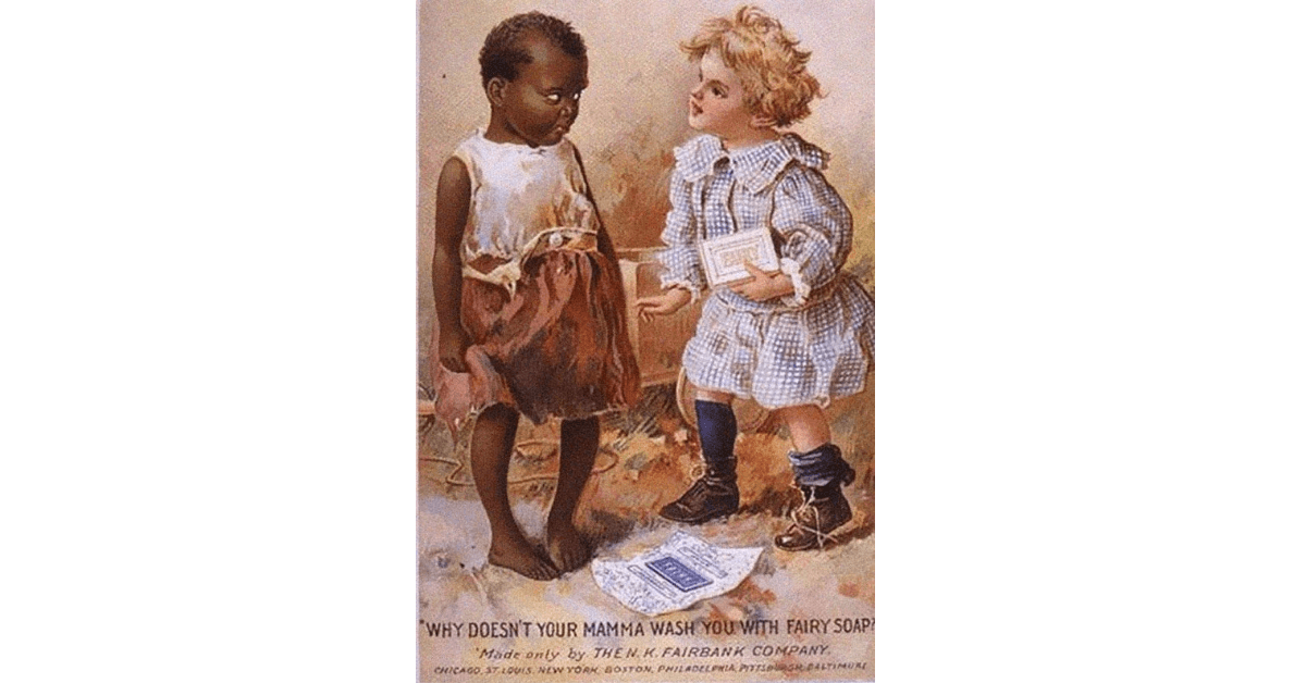 En él podemos ver a dos niñas, una de origen afroamericano y otra caucásica. Las diferencias son obvias, una está vestida con atuendo elegante, mientras que la otra tiene ropa desgastada y no lleva zapatos. La niña rubia le pregunta a la otra: «¿Por qué tu mamá no te lava con jabón fairy?», queriendo decir que de esta manera se blanquearía.